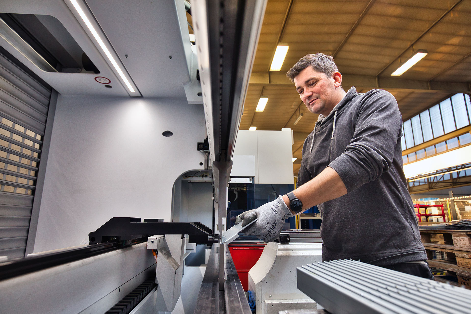 Präzises Biegen und Kanten gehören zu unserem Alltag bei ALPHA. Unsere leistungsstarken CNC-Abkantpressen sind die Basis für wirtschaftliche Bearbeitung von Einzel- sowie Serienfertigung. Durch das ACB – Automatically Controlled Bending – wird bereits das erste Teil prozesssicher gefertigt. Ausfallzeiten sowie Ausschuss gehören Dank dieses Winkelmesssystems der Vergangenheit an.
